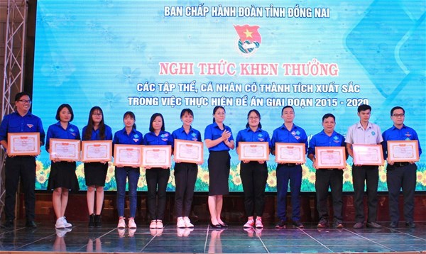 Tại Hội nghị tổng kết, Ban Thường vụ Tỉnh đoàn cũng đã khen thưởng: 37 tập thể, 75 cá nhân có thành tích xuất sắc trong công tác chỉ đạo, tổ chức, triển khai thực hiện Đề án. Trong đó Đoàn Thanh niên Trường ĐH Lạc Hồng và 2 đại diện xuất sắc của trường Đ/c Nguyễn Đình Phi – Phó Bí thư Đoàn trường; Đ/c Đặng Đại Hùng – Phó Chủ tịch công đoàn trường, nguyên Phó Bí thư đoàn trường đã được khen thưởng có thành tích xuất sắc trong 5 năm triển khai thực hiện Đề án “Đoàn TNCS Hồ Chí Minh tỉnh Đồng Nai chung tay xây dựng nông thôn mới giai đoạn 2015 - 2020”.