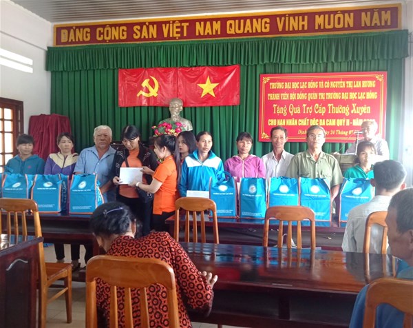 Trên tinh thần chia sẻ nỗi đau mà các nạn nhân đang phải ngày ngày gánh chịu. Trong 2 ngày 23-24/7/2020, trường ĐH Lạc Hồng phối hợp với Hội Chất độc da cam/dioxin tỉnh Đồng Nai đã tổ chức thăm và tặng quà quý II/2020 cho 70 nạn nhân bị nhiễm chất độc da cam/dioxin tại 04 huyện Cẩm Mỹ và Xuân Lộc, huyện Trảng Bom và Định Quán.