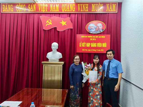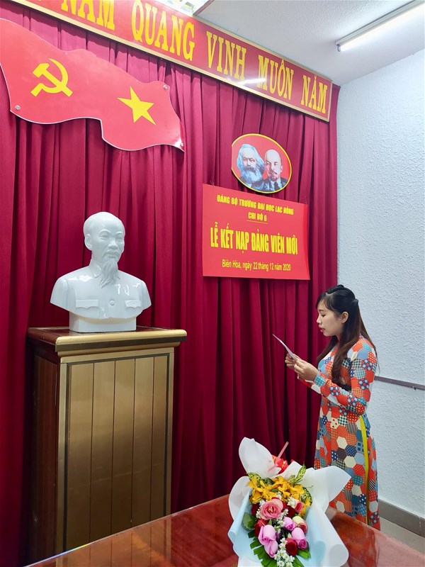 Được sự đồng ý của Đảng ủy khối các cơ quan tỉnh Đồng Nai, Ban Thường vụ Đảng ủy trường; ngày 22/12/2020, tại văn phòng Đảng ủy, Cơ sở 3; Chi bộ 6 đã tổ chức Lễ kết nạp đảng viên cho quần chúng Đỗ Thị Kim Oanh vào Đảng Cộng sản Việt Nam, đến dự buổi lễ kết nạp có Đ/c Nguyễn Thị Thu Lan – Phó Bí thư Đảng ủy, Phó Hiệu trưởng nhà trường cùng toàn thể đảng viên trong Chi bộ 6.