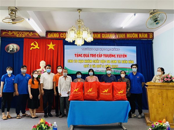 Trường Đại học Lạc Hồng và gia đình Cô Đỗ Thị Lan Đài (Chủ tịch Hội đồng trường), Thầy Đỗ Khôi Nguyên (Phó Hiệu trưởng nhà trường) hỗ trợ, trợ cấp thường xuyên cho 90 nạn nhân chất độc da cam trên địa bàn tỉnh Đồng Nai.