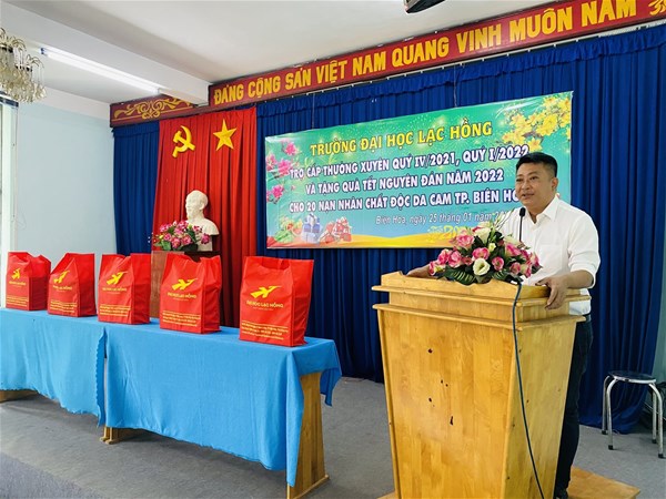 Tổng kinh phí dịp này trao cho 90 nạn nhân gồm quà Tết, trợ cấp quý IV/ 2021, quý I/2022 là: 268 triệu đồng; đây là kinh phí từ Trường Đại học Lạc Hồng và gia đình Cô Đỗ Thị Lan Đài (Chủ tịch Hội đồng trường), Thầy Đỗ Khôi Nguyên (Phó Hiệu trưởng nhà trường) hỗ trợ, trợ cấp thường xuyên cho 90 nạn nhân chất độc da cam trên địa bàn tỉnh Đồng Nai