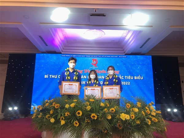 Hình 1: 03 Đ/c là Bí thư chi đoàn tiêu biểu xuất sắc giai đoạn 2017 - 2022 tại buổi lễ tuyên dương