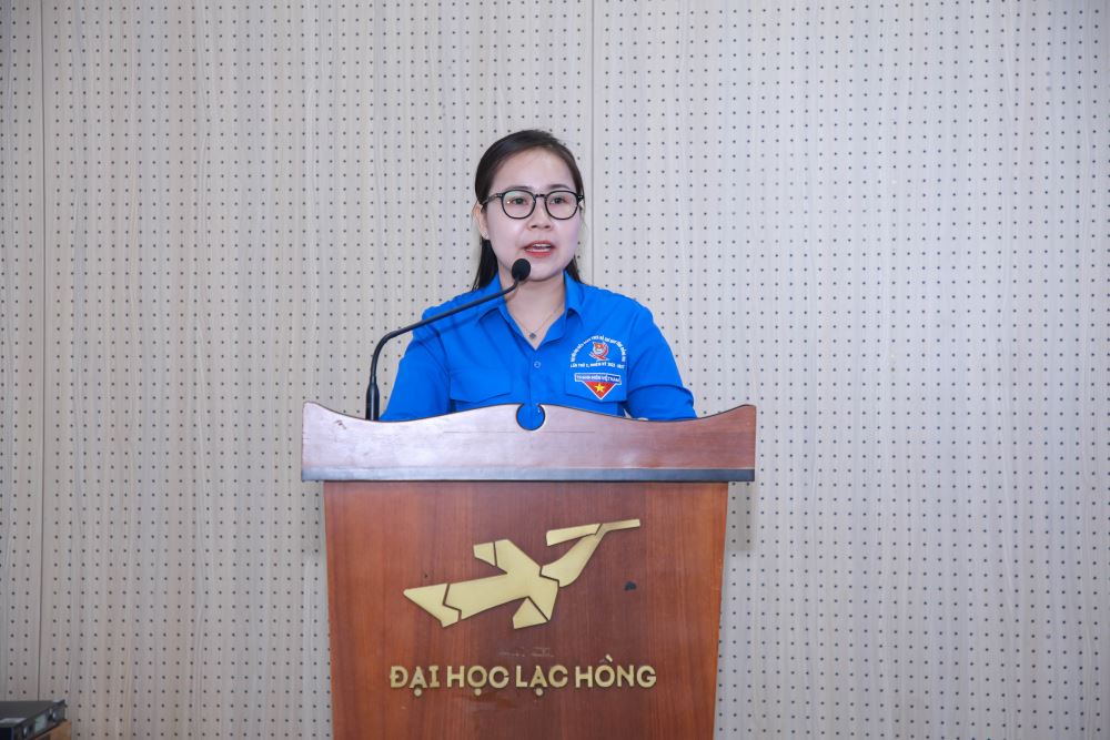Đồng chí Trương Lê Bảo Trinh – Bí thư Đoàn trường ghi nhận, biểu dương những kết quả đạt được của công tác Đoàn, Hội và phong trào thanh niên, sinh viên; nêu ra những hạn chế trong công tác Đoàn - Hội năm học 2023 – 2024; triển khai phương hướng, nhiệm vụ trọng tâm trong năm học mới 2024 - 2025.