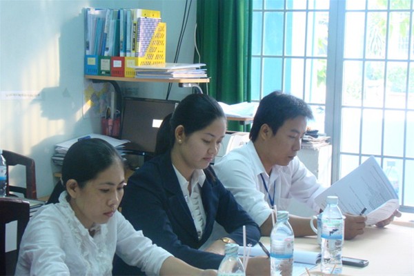 Các đồng chí đảng viên trong Chi bộ thảo luận nội dung bản phương hướng