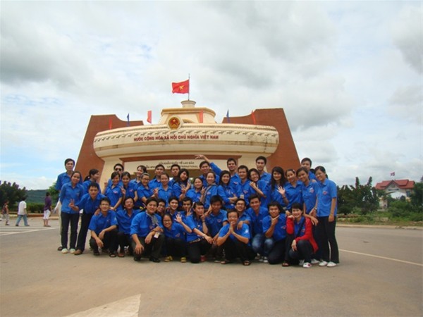 Đoàn cùng Đại học Huế tại cửa khẩu Lao Bảo