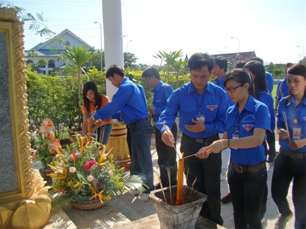 Đoàn Đại học Lạc Hồng (đ/c Vũ Văn Tuấn - Phó trưởng đoàn cùng sinh viên tình nguyện)
