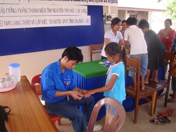 Tại tỉnh Saravan - Lào, đoàn công tác đã được lãnh đạo tỉnh, lãnh đạo huyện và nơi làm việc đón tiếp rất long trọng. Đoàn Đại học Lạc Hồng cũng đã kết hợp cùng đoàn sinh viên tình nguyện của Đại học y dược Huế cùng tiến hành chương trình khám và phát thuốc cho bà con tại huyện Vapi. Ngoài ra đoàn công tác cũng đã tặng 15 phần quà cho gia đình chính sách và 01 máy tính cho tỉnh đoàn Saravan.