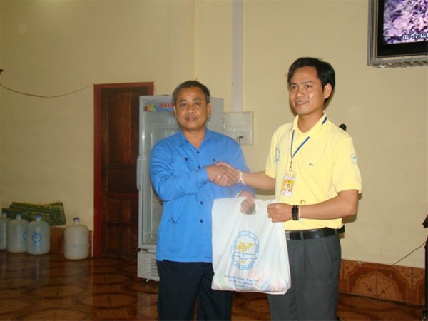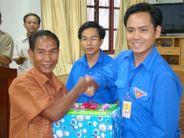 Đ/c Lê Sơn Quang trao tặng máy tính cho tỉnh đoàn Saravan