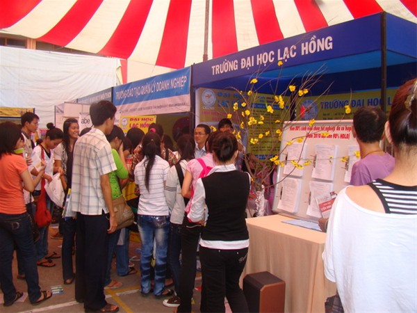 Gian hàng triển lãm của trường ĐH Lạc Hồng cũng được các bạn học sinh cũng đánh giá rất cao. Trường có dựng một tấm bảng bao gồm hàng trăm hợp đồng  lao động của sinh viên với các doanh nghiệp ngay khi chưa ra trường. Theo thống kê, năm nay đã có hơn 80% sinh viên chưa tốt nghiệp đã có việc làm. Con số này năm 2010 là hơn 90%.