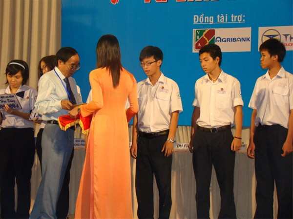 Hình 9: TS Trần Hành trao học bổng của trường cho các bạn học sinh tại buổi tư vấn
