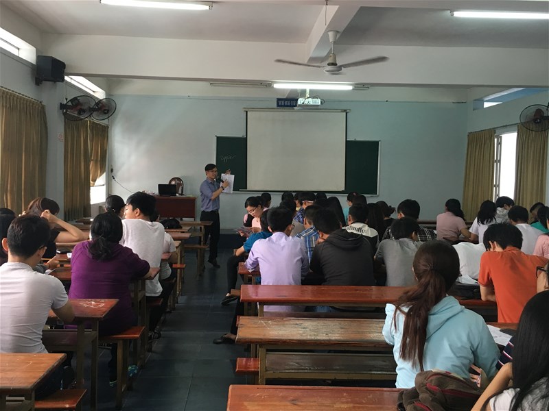 Sinh viên chăm chú lắng nghe hướng dẫn của giảng viên Khoa Anh văn đại cương
