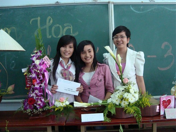 Cô Hải Yến và Cô Kim Anh chụp hình lưu niệm với các bạn sinh viên