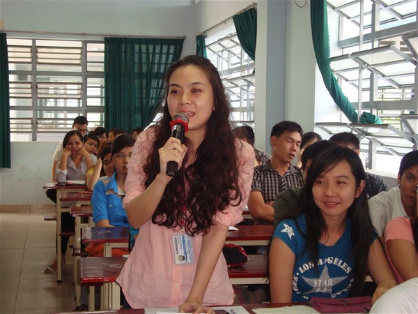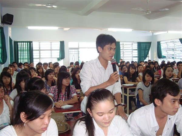 Hình 1: Thầy TS. Phan Thành Tâm trao đổi, giải đáp thắc mắc của sinh viên nghiên cứu đề tài định lượng