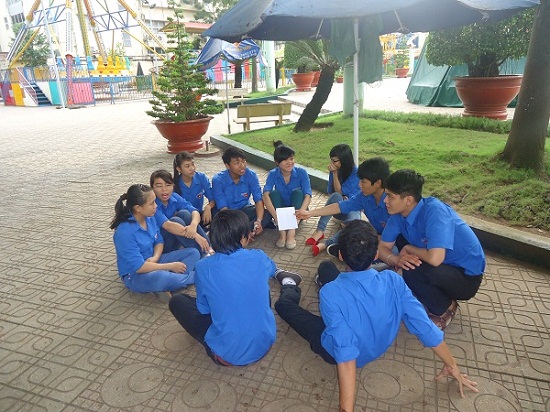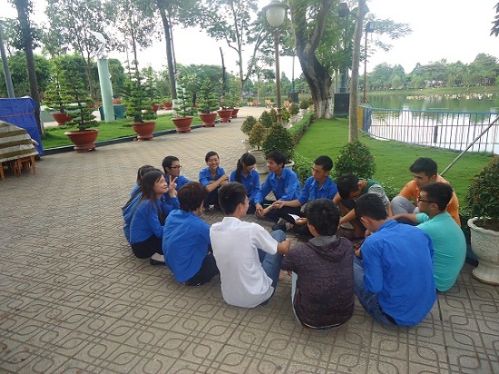 + Các bạn được Đ/c Huỳnh Thúc Hiếu dạy kỹ năng làm việc nhóm, trong kỹ năng làm việc nhóm thì mỗi đội được Ban tổ chức phát giấy và viết mực, kỹ năng đầu tiên các bạn được học đó là kỹ năng nhớ tên các thành viên trong nhóm, sau đó các nhóm tự đặt tên cho nhóm mình gồm các đội (SAO VÀNG, LULU, ÁO XANH và RUBIC), kế đến các đội giới thiệu về tên của nhóm, câu “SLOGAN” và phản biện về tên của các nhóm khác.