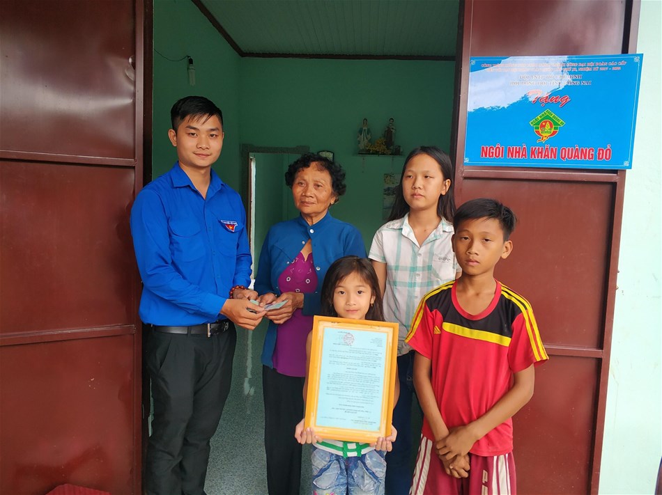 Cũng trong ngày 22/9/2018, Đồng chí Trần Quốc Vũ - Bí thư Đoàn khoa Quản trị - Kinh tế quốc tế cũng các bạn trong đoàn đã đến thăm và trao suất học bổng trị giá 2.000.000đ/suất cho 2 em học sinh khó khăn. Riêng em Lê Thị Ngọc Yến, học sinh lớp 2 trường Lê Quý Đôn, huyện Định quán thêm 500.000đ do anh Nguyễn Thanh Liêm tài trợ thêm.