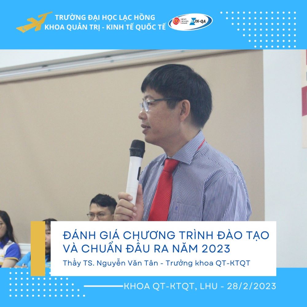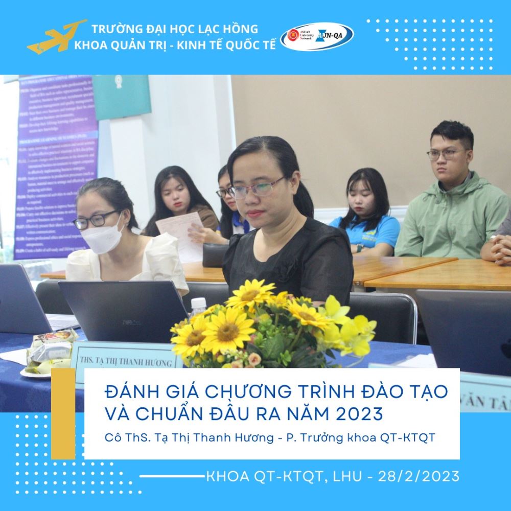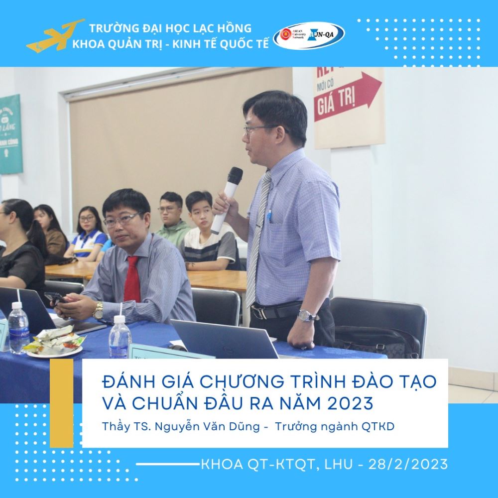 Vào ngày 28/2/2023, khoa Quản trị - Kinh tế Quốc tế trường Đại học Lạc Hồng đã diễn ra buổi tọa đàm đánh giá chương trình đào tạo và chuẩn đầu ra của ngành Quản trị kinh doanh. Chương trình được diễn ra tại phòng D105 (Co – Working Space), CS2 – Đại học Lạc Hồng. Với sự tham gia của: