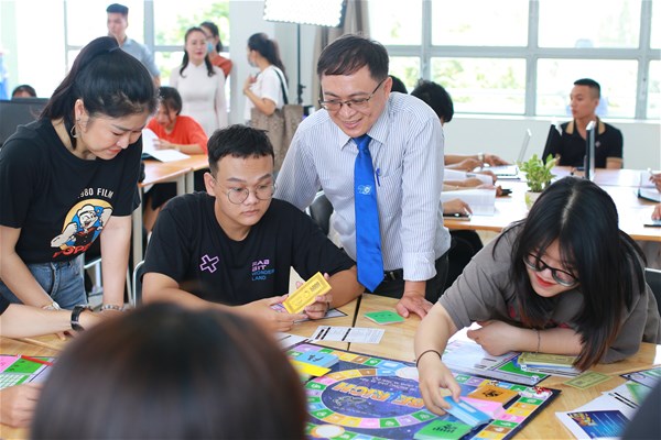Sinh viên thực hành môn "Khởi sự kinh doanh" với game "Cash Flow Be Rich" tại phòng Thực hành của Khoa