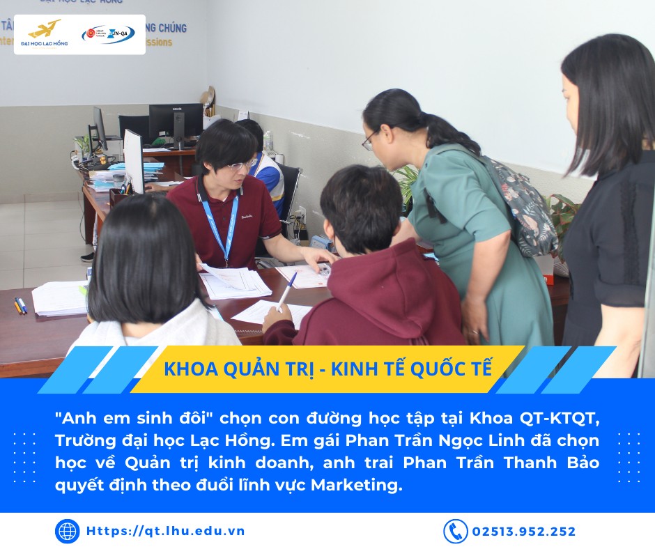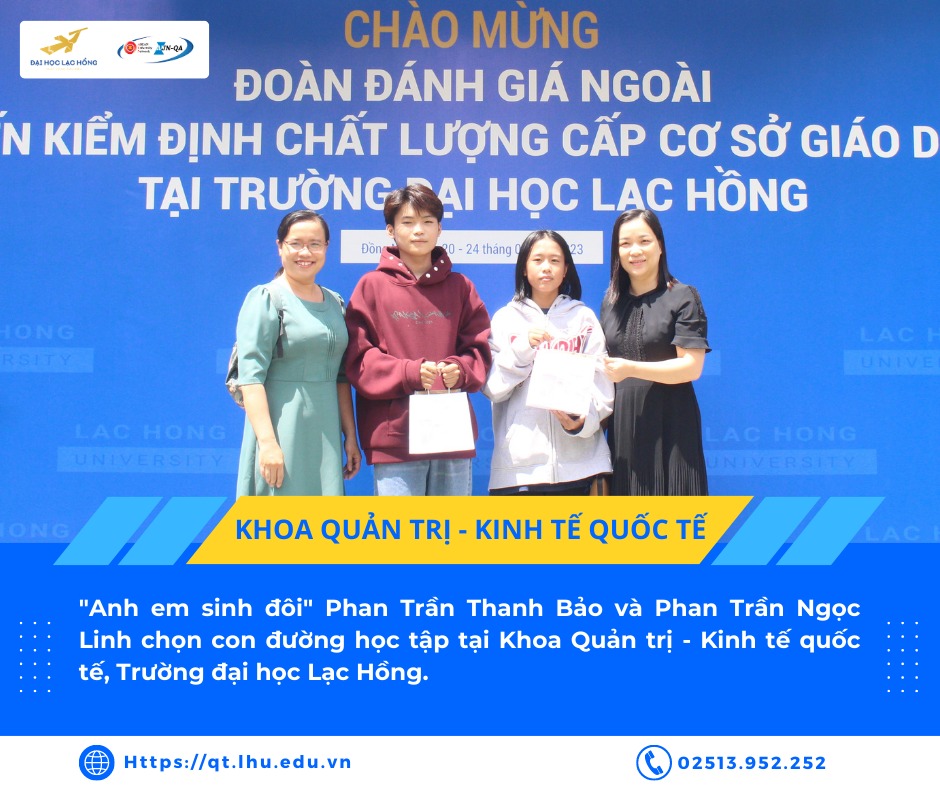 Việc hai anh em sinh đôi cùng nhập học tại khoa Quản trị - Kinh tế quốc tế, Trường đại học Lạc Hồng hứa hẹn sẽ là một hành trình đáng nhớ, đồng thời mở ra cơ hội cho họ phát triển nhiều kỹ năng và kiến thức trong lĩnh vực kinh doanh và marketing.