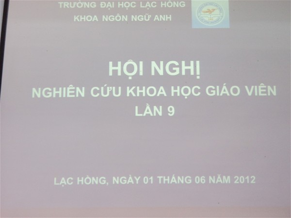 Vào lúc 10 giờ ngày 01/06/2012, tại phòng D201, Khoa Ngôn ngữ Anh đã tổ chức Hội nghị báo cáo NCKH giáo viên lần thứ 9 năm 2012.