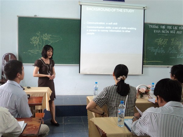 Hội nghị NCKH giáo viên lần này Hội đồng tiến hành đánh giá đề tài nghiên cứu “Designing syllabus of communication skills” do ThS Lê Thị Bích Vy và ThS. Phạm Thanh Bình thực hiện.