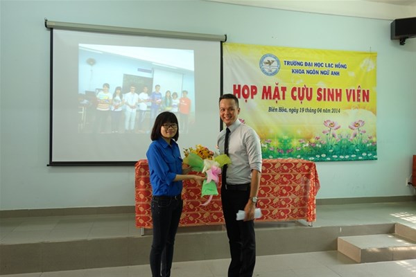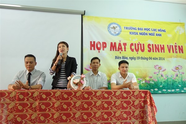 Vào lúc 8h00 ngày 19 tháng 04 năm 2014 tại Hội trường SN-C110, Trường Song Ngữ Lạc Hồng, Khoa Ngôn Ngữ Anh đã long trọng tổ chức chương trình họp mặt cựu sinh viên lần I năm 2014 nhằm mục đích giúp cựu sinh viên của Khoa có dịp thăm lại các thầy cô và giao lưu với các sinh viên khóa dưới, gắn kết hơn nữa mối quan hệ giữa thầy cô giáo với sinh viên, và giữa sinh viên các khóa với nhau. Đây cũng là dịp ra mắt Ban liên lạc cựu sinh viên Khoa, là cầu nối giữa các thế hệ sinh viên qua từng thời kỳ. Ban liên lạc cựu sinh viên khoa Ngôn ngữ Anh gồm 09 thành viên: