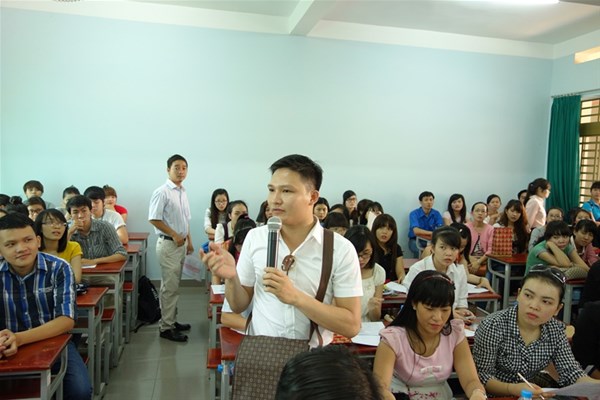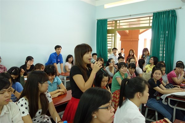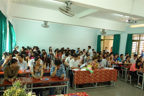 Tham gia buổi họp mặt có sự hiện diện của NGƯT. TS Nguyễn Thị Thu Lan – Phó Hiệu trưởng nhà trường, ThS. Trần Dũng – Giám đốc Trung tâm Quan hệ doanh nghiệp và hỗ trợ sinh viên, GVC. ThS Ngô Thị Xuân Liên – Trưởng khoa Ngôn ngữ Anh, các cán bộ - giảng viên – nhân viên khoa cùng đông đảo cựu sinh viên và sinh viên các khóa về tham dự. Ban chủ nhiệm khoa cũng đã kết hợp đưa nội dung chuẩn đầu ra vào buổi họp mặt để cùng nhau thảo luận và đóng góp ý kiến. Qua đó, các cựu sinh viên cũng đã nhiệt tình trao đổi và chia sẻ kinh nghiệm làm việc, cơ hội việc làm sau khi ra trường cho các sinh viên năm cuối. Bên cạnh đó, các bạn sinh viên cũng đặt ra khá nhiều câu hỏi và các bạn cũng tỏ ra hài lòng với phần giải đáp của các anh chị cựu sinh viên.