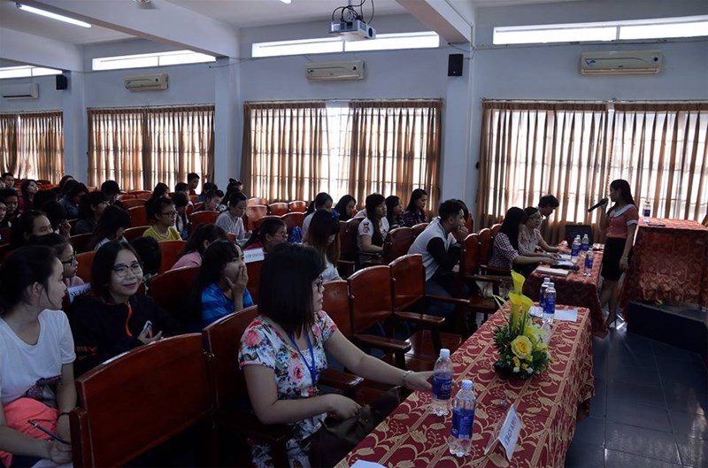 Mở đầu chương trình, Ban chấp hành Đoàn – Hội sinh viên khoa đã sẵn sàng hâm nóng không khí trong khán phòng bằng một số trò chơi quen thuộc bên cạnh các tiết mục văn nghệ góp vui đến từ các bạn sinh viên khóa trước mang lại không khí vô cùng vui tươi và ấm áp. Với sự quan tâm sâu sắc dành cho sinh viên, ThS. GVC Ngô Thị Xuân Liên –Trưởng Khoa cùng ThS. GVC Hoàng Thúy Nguyên – Phó trưởng Khoa đã giới thiệu đôi nét về chương trình học tập, đội ngũ cán bộ, giảng viên trong Khoa, đồng thời chia sẻ những bỡ ngỡ của các tân sinh viên và gửi gắm các em những lời dặn dò rất thiết thực, giúp các em hiểu rõ về ngành học của  mình và đạt kết quả cao trong học tập. Tiếp lời Ban chủ nhiệm Khoa, bộ phận giáo vụ, quản sinh và quản lý thực tập cũng lần lượt giới thiệu tổng quan về Khoa, các nội quy, quy định, thủ tục xử lý hành chính cũng như các hoạt động chuyên môn và Đoàn – Hội giúp các tân sinh viên vững vàng hơn trong môi trường học tập mới. Đồng thời các bộ phận liên quan cũng đã giải đáp rất nhiều thắc mắc của các em tân sinh viên trước khi đưa các em đến với Câu lạc bộ tiếng Anh lần I của năm học mới này. Đây là một trong những sân chơi học thuật do khoa Ngôn ngữ Anh tổ chức được đông đảo sinh viên yêu thích và tham gia nhiệt tình nhất. Dưới sự dẫn dắt của các giảng viên nhiều kinh nghiệm, các em tân sinh viên tuy lần đầu đến với câu lạc bộ nhưng đã tự tin và bản lĩnh trong từng hoạt động tham gia. Tại đây, ngoài việc thử sức với khả năng nói tiếng Anh của mình, các em còn có cơ hội giao lưu với rất nhiều bạn mới và nhận về những phần quà xinh xắn cho mình.