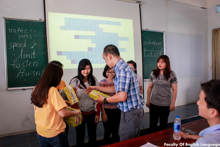 Đến với câu lạc bộ tiếng Anh lần này, các bạn sinh viên được thỏa sức tham gia nhiều hoạt động như: Crosswords, Traffic jams, Road signs, Traffic in India and USA, …tất cả đều tự tin thể hiện sự năng động và nhiệt tình để mang về cho cá nhân và tập thể nhiều phần quà hấp dẫn. Thông qua từng hoạt động, sinh viên có thể mở rộng kiến thức của bản thân về giao thông, từ đó sẽ nâng cao được ý thức thi tham gia giao thông.