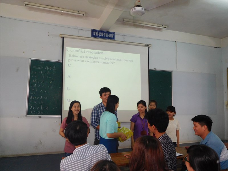 Đến với Câu lạc bộ tiếng Anh lần này, hơn 100 sinh viên trong và ngoài khoa Ngôn ngữ Anh sẽ có cơ hội tham gia nhiều hoạt động thú vị để nắm được một số kiến thức cơ bản về mâu thuẫn và cách giải quyết tình huống, bên cạnh đó, mọi người còn được chia sẻ kinh nghiệm về những mâu thuẫn của bản thân, nhìn hình đoán dấu hiệu mâu thuẫn hay lồng tiếng phim liên quan đến chủ đề chính, và cuối cùng là giải quyết các tình huống được Ban tổ chức đưa ra.