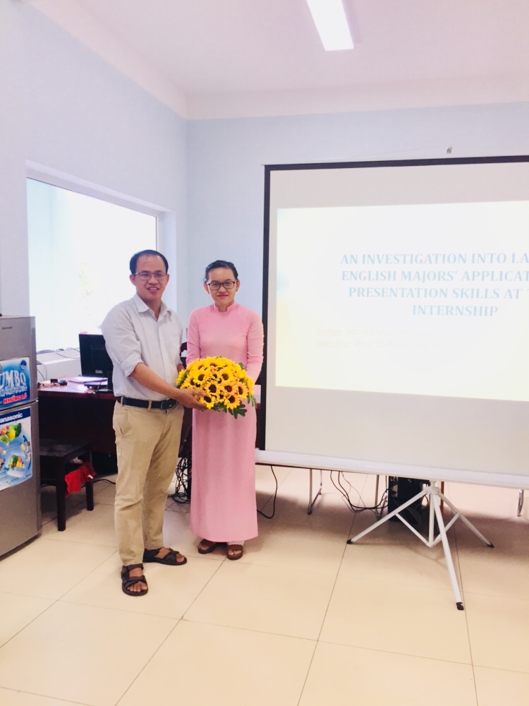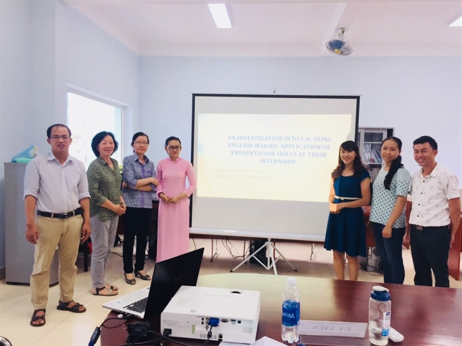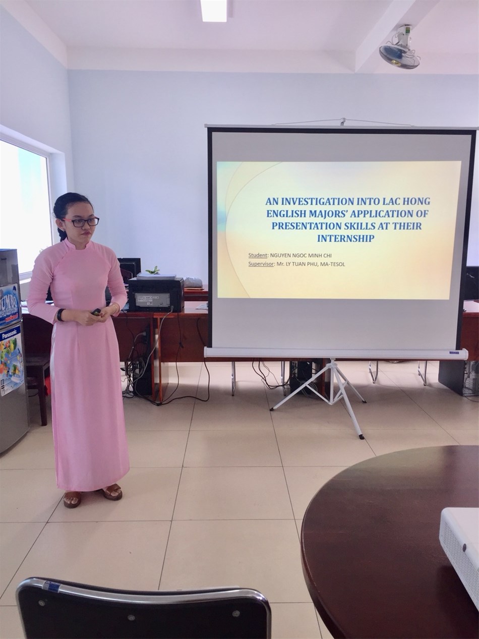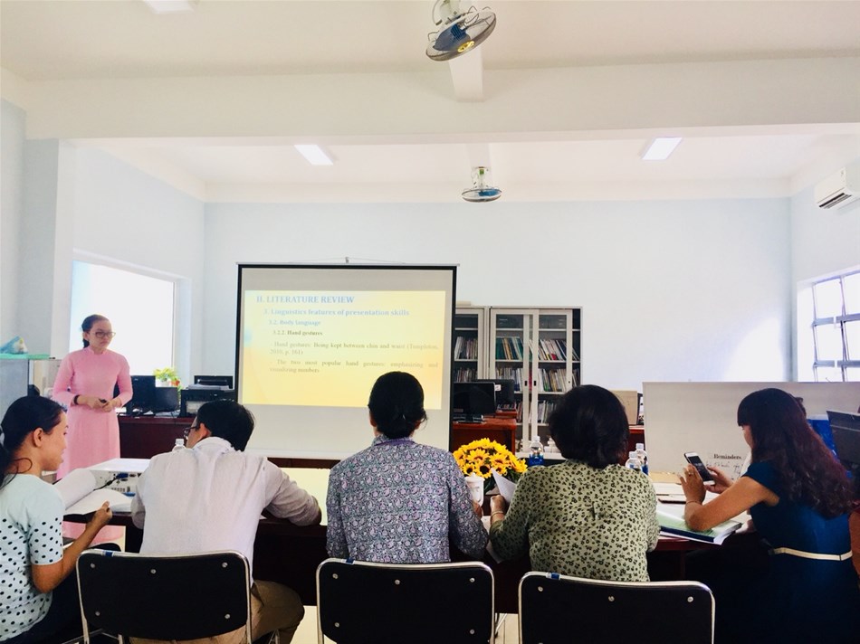 Hội nghị lần này Khoa Ngôn Ngữ Anh có 01 đề tài do sinh viên Nguyễn Ngọc Minh Chi – lớp 14AV111 tham gia báo cáo. Nhìn chung đề tài có sự đầu tư và chuẩn bị rất tốt dưới sự hướng dẫn tận tình của thầy Lý Tuấn Phú, một trong những giảng viên có nhiều kinh nghiệm trong lĩnh vực nghiên cứu khoa học. Hội đồng đã làm việc nghiêm túc, lắng nghe và đưa ra những ý kiến nhận xét sâu sắc giúp sinh viên hoàn thiện bài báo cáo của mình cũng như chuẩn bị cho Hội nghị nghiên cứu khoa học sinh viên cấp trường nếu đề tài được đánh giá cao.