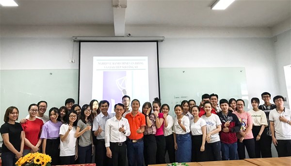 Với mục tiêu giúp sinh viên năm cuối nói riêng và toàn thể sinh viên của khoa nói chung, nắm được cơ bản các kỹ năng cần thiết trong nghiệp vụ hành chánh, văn phòng như: tổ chức, điều hành, tiêu chuẩn hóa và kiểm soát các hoạt động xử lý thông tin nhằm đạt được mục tiêu đề ra của doanh nghiệp, cách quản lý thiết bị, điều kiện vật chất ..., và các lưu ý khi giao tiếp nơi công sở, Khoa Ngôn ngữ Anh đã mời Ông Trần Tấn Phát, Trưởng phòng Tổng vụ - Công ty TNHH Thép SeAH, về chia sẻ với sinh viên khoa các nội dung cơ bản này. Được biết, Ông Trần Tấn Phát cũng là một cựu sinh viên ngành Ngôn Ngữ Anh.