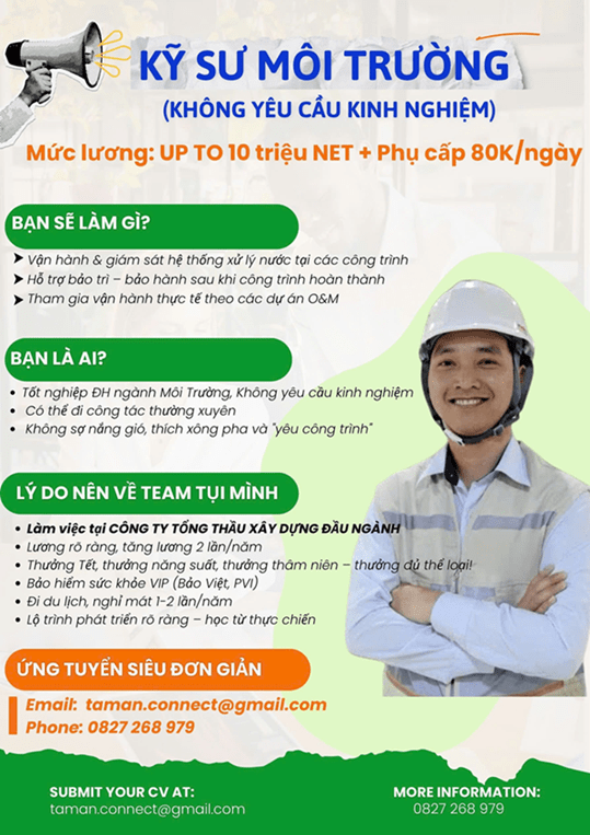 Công ty Tổng Thầu Xây Dựng tuyển dụng nhân viên ngành Môi trường