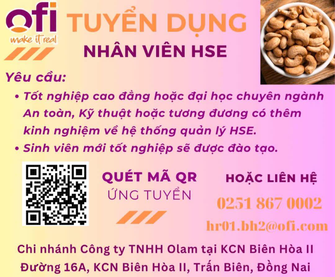 Công Ty TNHH Olam tại KCN Biên Hòa 2 thông báo tuyển dụng nhân viên ngành Môi trường (HSE)