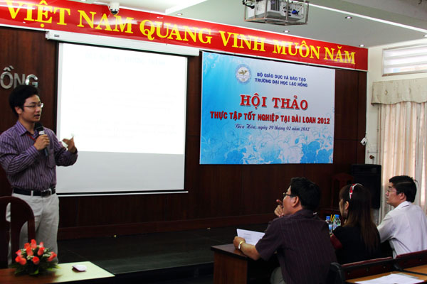 Hội thảo về chương trình thực tập tốt nghiệp cho sinh viên trường Đại học Lạc Hồng tại Đại học Cao Hùng, Đài Loan đã diễn ra sáng ngày 29/02/2012 tại cơ sở I, trường Đại học Lạc Hồng.