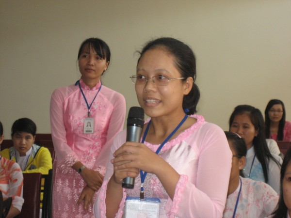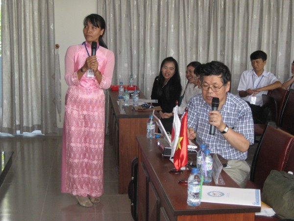 Ông Kiichiro Yamada (người mặc áo kẻ sọc) đang trả lời các câu hỏi của sinh viên