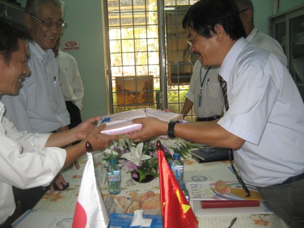 Từ phải sang: ông Ikehata, ông Nakagawa, ông Phan Quốc Hanh và trợ lý