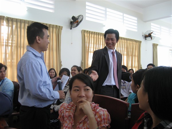 Mở đầu hội thảo là phần giới thiệu sơ lược về công ty và tập đoàn Esquel, tiếp đó là phần thảo luận giữa doanh nghiệp và sinh viên với rất nhiều câu hỏi được sinh viên đặt ra như: Muốn trở thành một người quản lý trong doanh nghiệp thì cần phải trang bị những gì? các chế độ và chính sách của công ty đối với nhân viên như thế nào?…