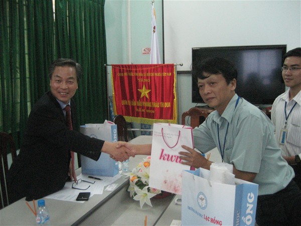Được sự ủy quyền của Hiệu trưởng Trường Đại học Lạc Hồng và Giám đốc Trung tâm Quan hệ Quốc tế Tư vấn Du học & Việc làm, chiều ngày 15/12/2009, thầy Phạm Thái Thạnh – Phó Giám đốc Trung tâm đã tiếp và làm việc với Tiến sỹ Keung Ryong Chang – Giám đốc Trung tâm Quan hệ Quốc tế - Đại học nữ Kwang Ju và Ông Jinoh Mo chuyên viên Trung tâm Quan hệ Quốc tế - Đại học nữ Kwang. Về phía Trường Đại học Lạc Hồng cùng tiếp với phó Giám đốc Trung tâm còn có thầy Nguyễn Tam Sơn, thầy Nguyễn Như Tỷ chuyên viên Trung tâm Quan hệ Quốc tế và đại diện thầy cô Khoa Đông Phương.