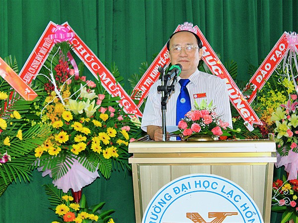 TS. Diệp Cẩm Thu - Phó hiệu trưởng Trường Đại học Lạc Hồng phát biểu chỉ đạo tại buổi lễ.