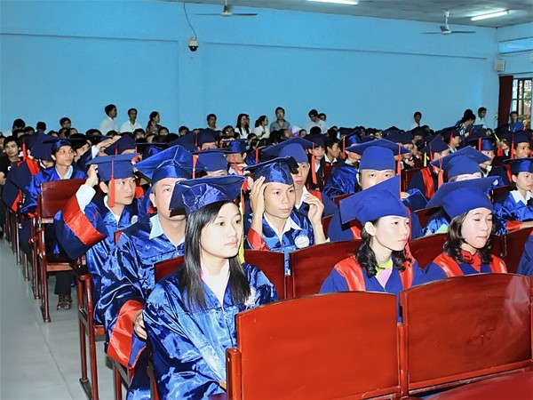 Thay mặt Ban giám hiệu Nhà trường, TS. Diệp Cẩm Thu - Phó hiệu trưởng Nhà trường phát biểu chỉ đạo và ân cần nhắn nhủ các em sinh viên mới vào nhập học cũng như các em tốt nghiệp cố gắng học tập, rèn luyện, làm việc để trở thành con người có ích cho đời cho xã hội, con đường học của các em đang thênh thang rộng mở, cơ hội học tập tốt nhất cho tất cả các em.