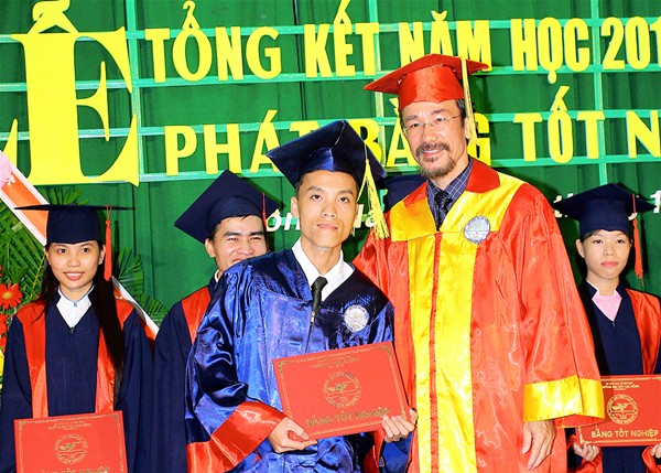Thầy PGS.TS. Trần Văn Lăng - Trưởng Khoa CNTT- trao bằng tốt nghiệp cho các tân kỹ sư.