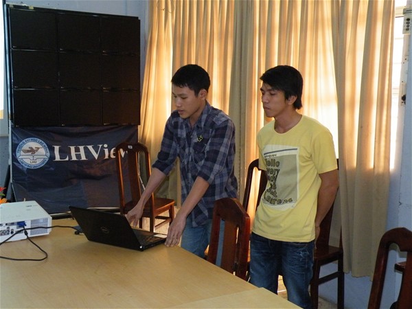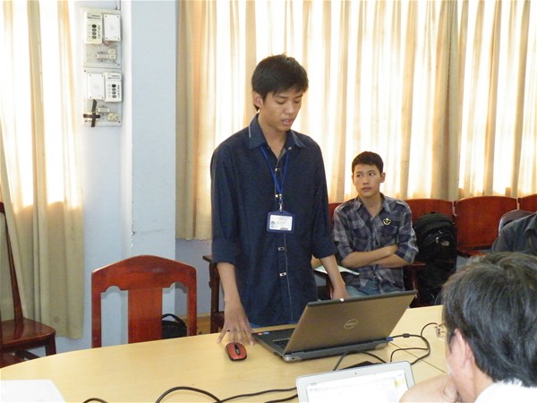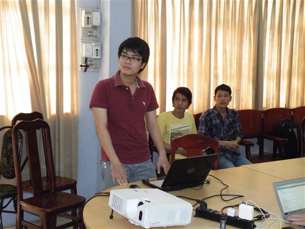 Lê Hữu Tài báo cáo tiến độ đề tài “Chương trình hỗ trợ người khiếm thị sử dụng điện thoại bằng cách nhận dạng tiếng nói”.