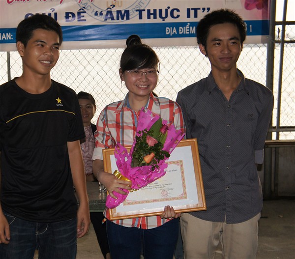 Anh Trần Thanh Hải, Bí thư Đoàn Khoa CNTT trao giải nhất cho đội lớp 11SE111.