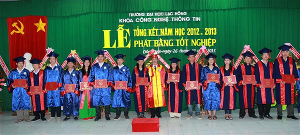 Sáng ngày 26-11-2013, tại hội trường A301, CS1, Trường Đại học Lạc Hồng, Khoa Công nghệ thông tin (CNTT) vừa tổ chức Lễ Tổng kết năm học 2012-2013, phát bằng tốt nghiệp cho hơn 170 tân kỹ sư.