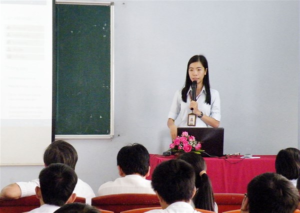 Cô Trương Thị Đức (hình phải), Giáo vụ khoa trao đổi với các sinh viên về các vướng mắc (như đăng ký học lại, số tiết các môn học…) có thể gặp phải trong các môn học có thể gặp phải trong quá trình học tập tại Khoa CNTT Trường Đại học Lạc Hồng. Cô Nguyễn Thị Liễu (hình trái), Quản sinh Khoa CNTT phổ biến đến sinh viên về các qui chế, qui định, chế độ khen thưởng - kỷ luật của Trường.