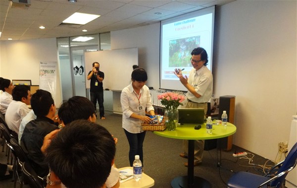 Chị Quỳnh Liên, nhân viên Phòng nhân sự giới thiệu sơ lược về Công ty GameLoft Việt Nam.