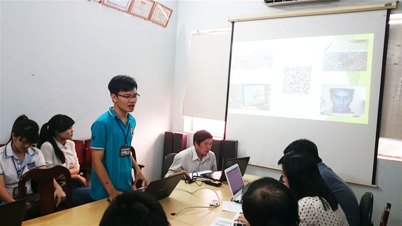 Sinh viên Đinh Văn Tú báo cáo tiến độ đề tài Tìm hiểu và ứng dụng Augmented Reality trên thiết bị di động nền tảng di động Android.