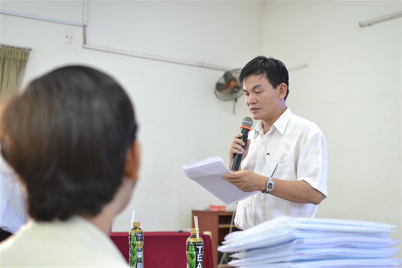 ThS. Trần Thanh Hải, thư ký hội đồng đọc quyết định thành lập hội đồng báo cáo tốt nghiệp.