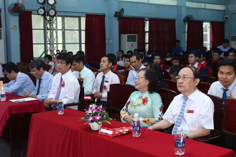 Thay mặt Ban giám hiệu Nhà trường, ông Lâm Thành Hiển - Phó hiệu trưởng Nhà trường phát biểu chỉ đạo và ân cần nhắn nhủ các em sinh viên mới vào nhập học cũng như các tân kỹ sư cố gắng học tập, rèn luyện, làm việc để trở thành người có ích cho đời, cho xã hội. Con đường học của các em đang thênh thang rộng mở, Trường luôn cơ hội học tập tốt nhất cho tất cả các em. Bên cạnh đó, ông nhắn nhủ đến đội ngũ giảng viên, nhân viên Khoa CNTT không ngừng cố gắng vươn lên trong sự nghiệp đào tạo và nghiên cứu khoa học của mình.