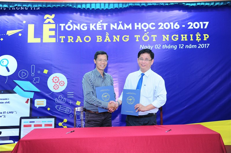 Tiếp theo chương trình buổi lễ ghi nhận sự ký kết bản ghi nhớ hợp tác đào tạo với Công ty TNHH Giải pháp phần mềm Tường Minh (TMA SOLUTIONS). Đại diện BGH nhà trường, TS. Lâm Thành Hiển cùng ông Hoàng Xuân Thanh, Giám đốc đào tạo của Công ty TMA Solutions đã thực hiện lễ ký kết.